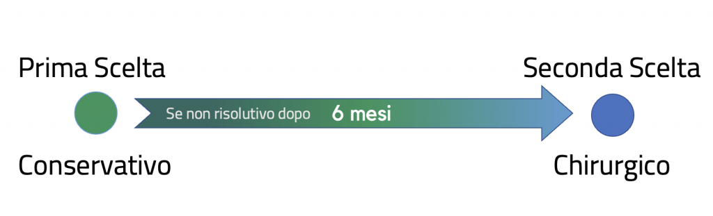 Il trattamento è prevalentemente conservativo ed è affidato al fisioterapista; qualora non si raggiungesse un buon outcome dopo sei mesi dall’inizio del trattamento, allora si potrà pensare ad intervenire chirurgicamente.